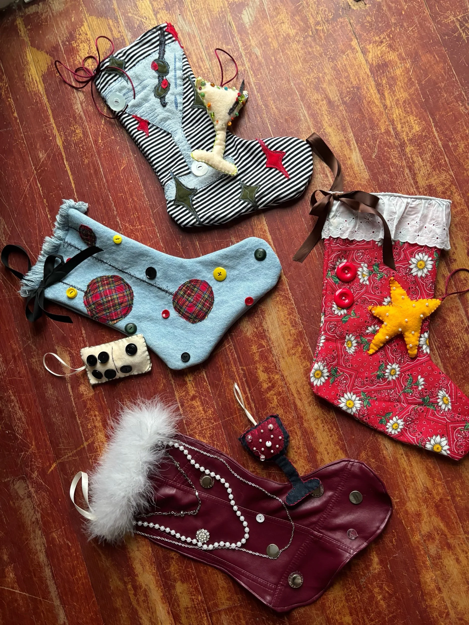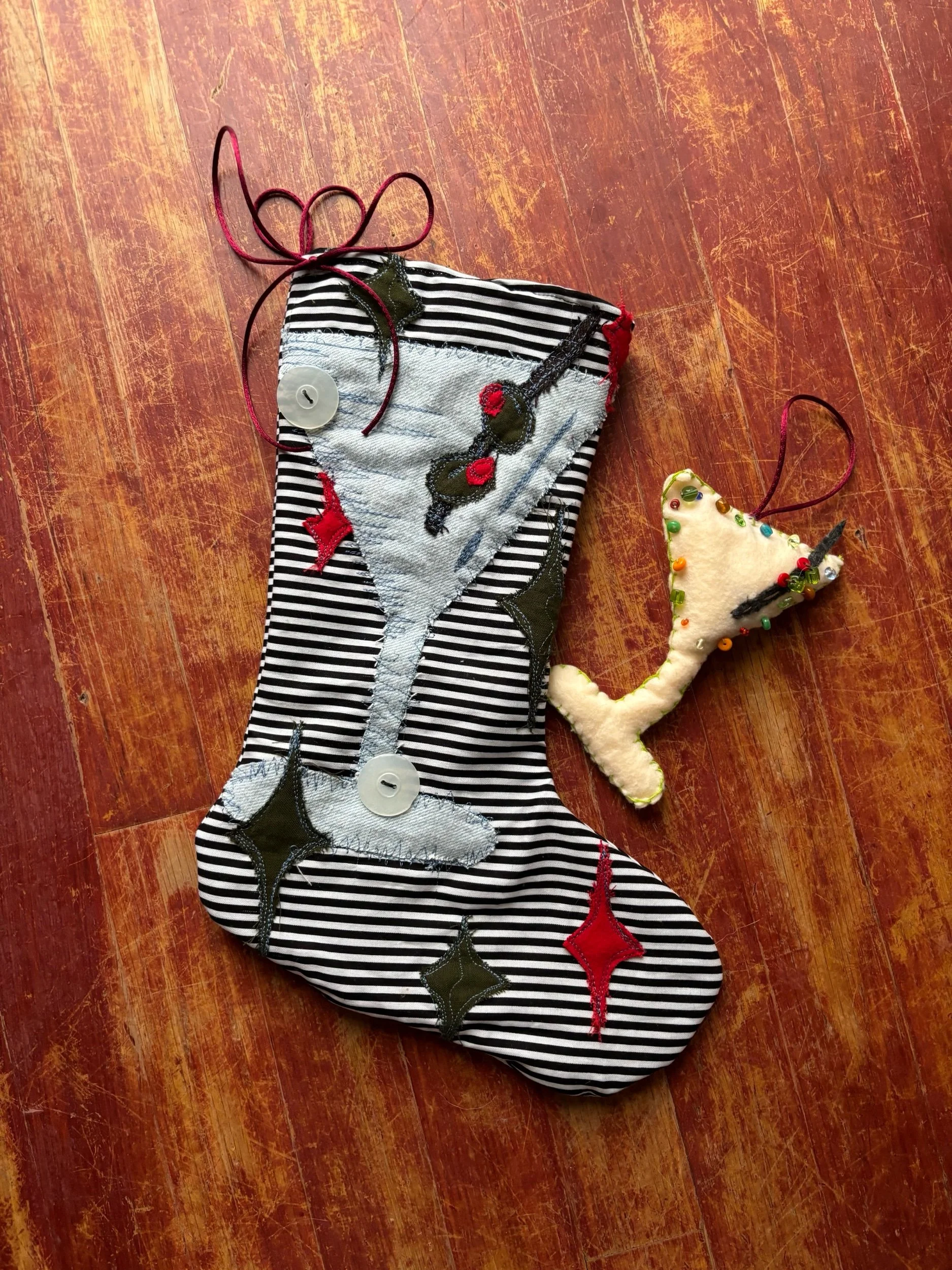 store › martini stocking set martini stocking set Sale Price: $32.00 Original Price: $40.00 handmade and upcycled martini stocking with matching beaded martini glass ornament handmade and upcycled martini stocking with matching beaded martini glass ornament Add To Cart Added! Reviews Reviewer Name Review Date Star Rating Description Posted on Etsy Product Show More