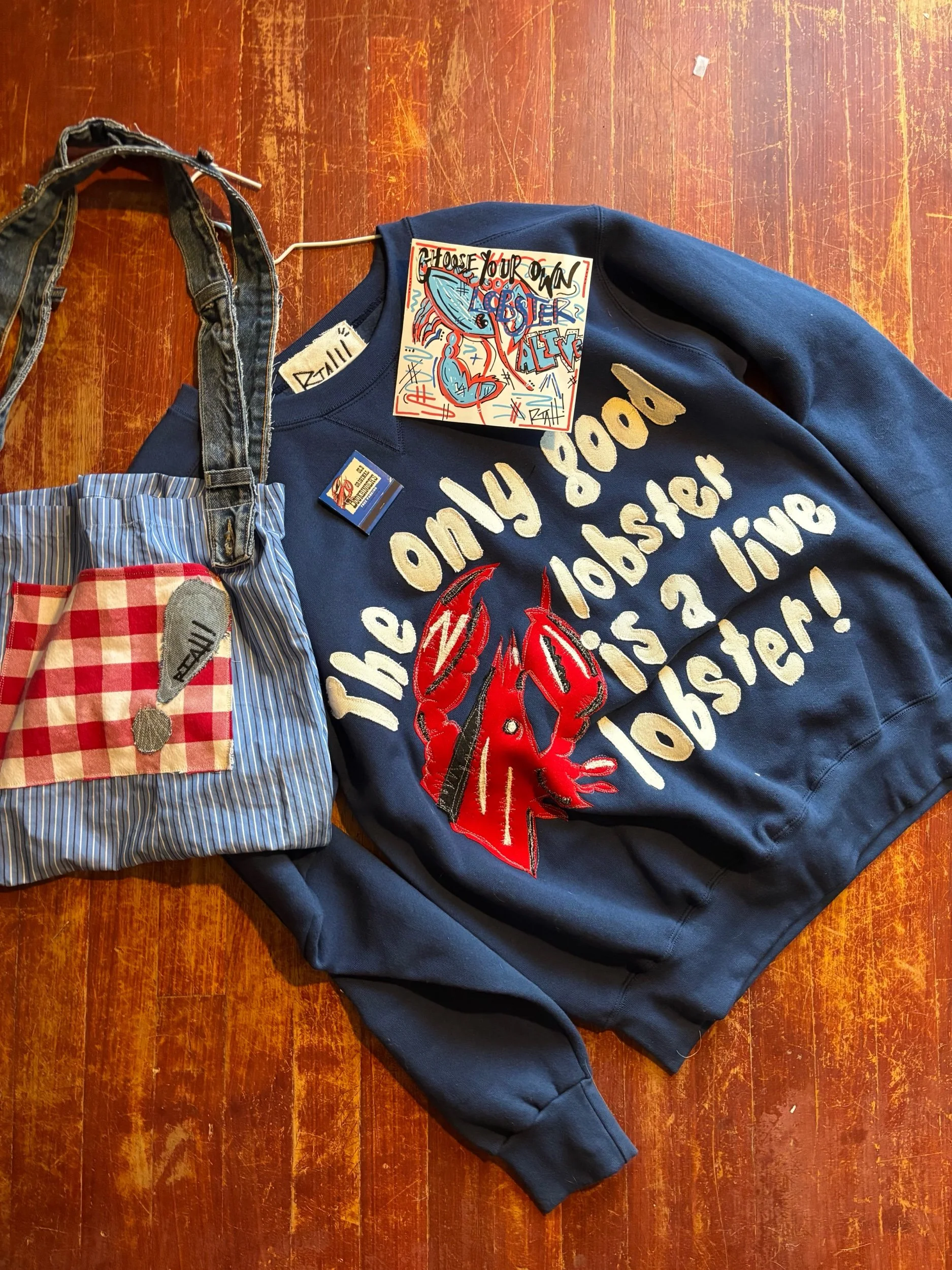 size xl vintage crew neck with applique patches and details! set comes with a hand upcycled matching by tote bag, the matchbook it was inspired by and a one of one print!’
